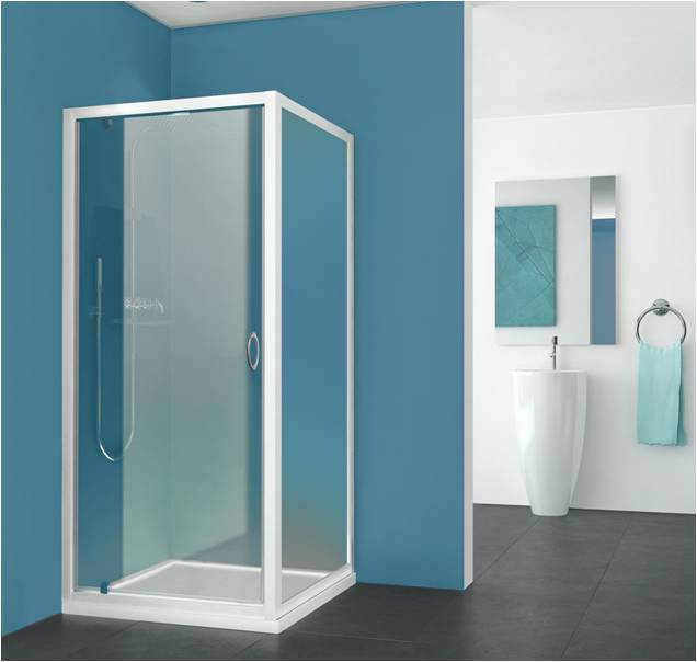 Porte de douche Pyra accès d'angle coulissant - Profil blanc Aquance
