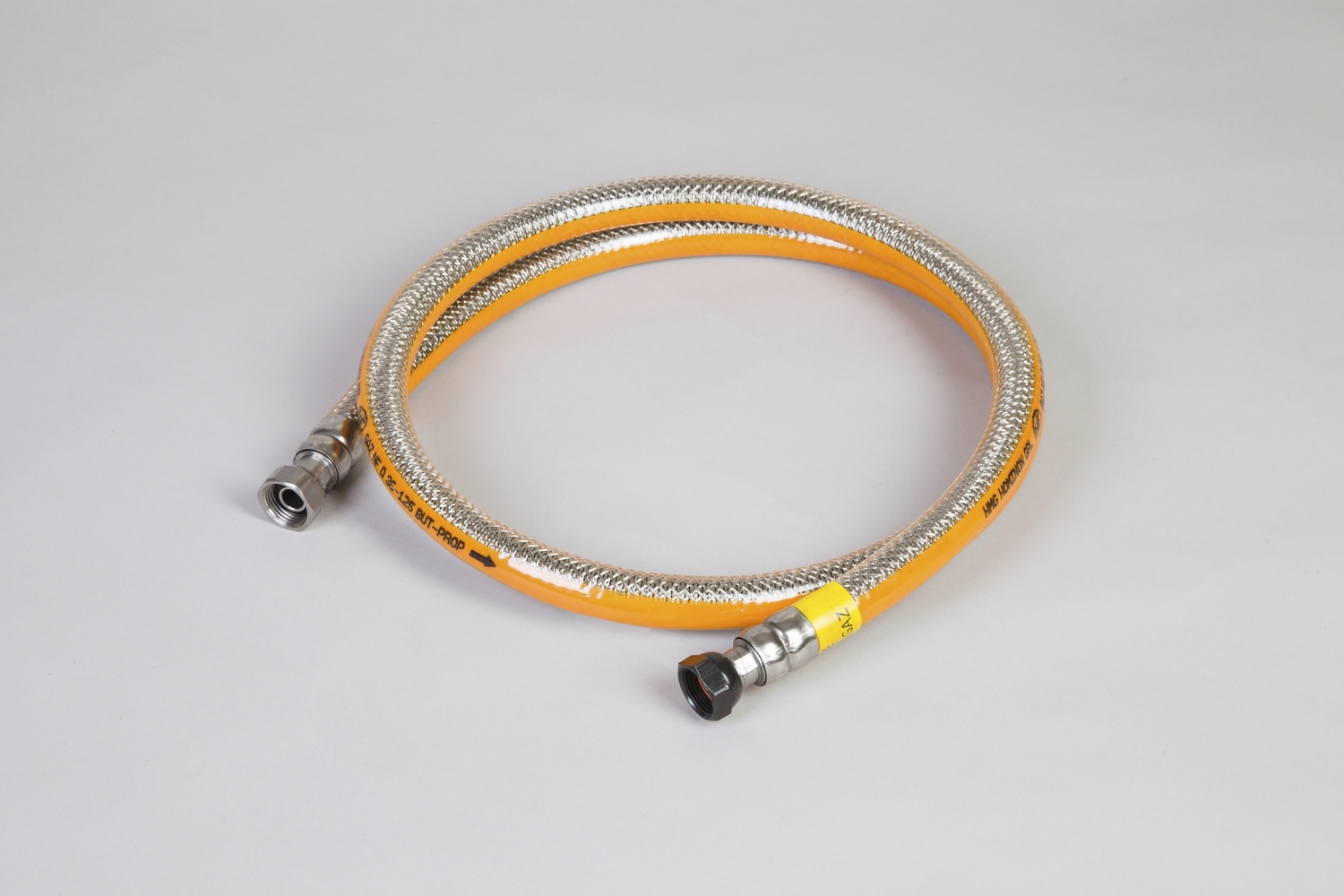 - Tuyau flexible métallique onduleux sans date limite d’emploi (sauf joints d’étanchéité) pour le raccordement externe des appareils à usage domestique utilisant le butane et le propane distribué par récipients