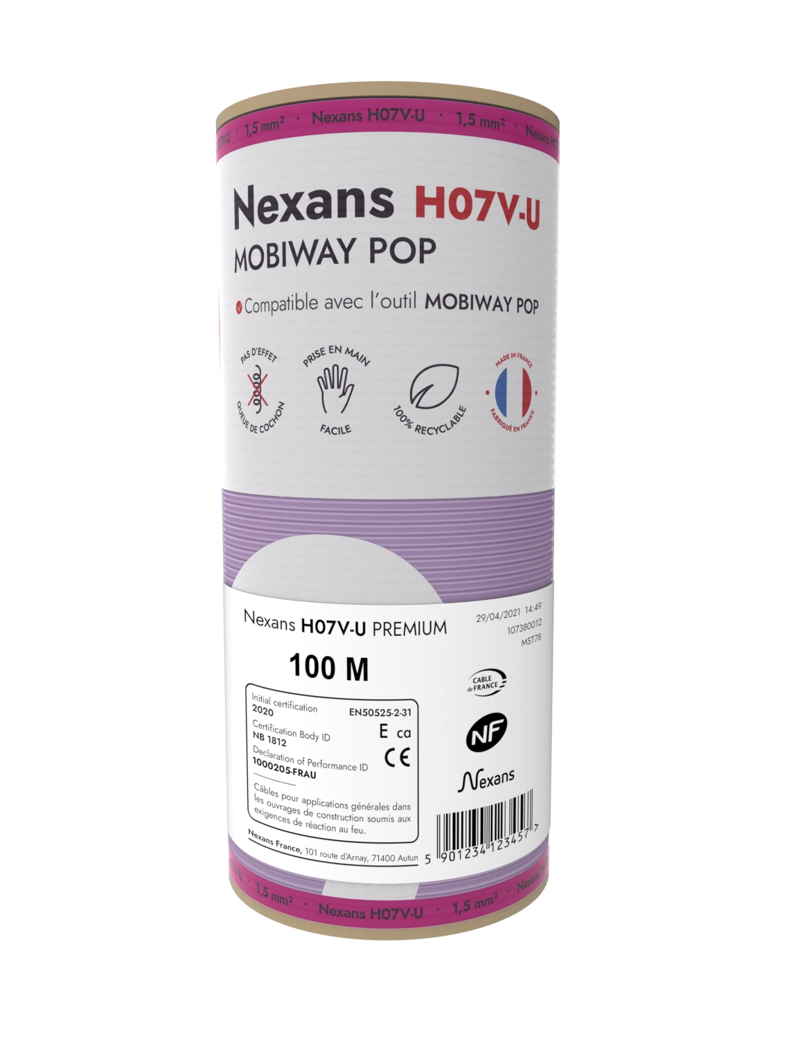 Fil H07V-U Mobiway Pop 1,5 mm² violet couronne 100 m Nexans