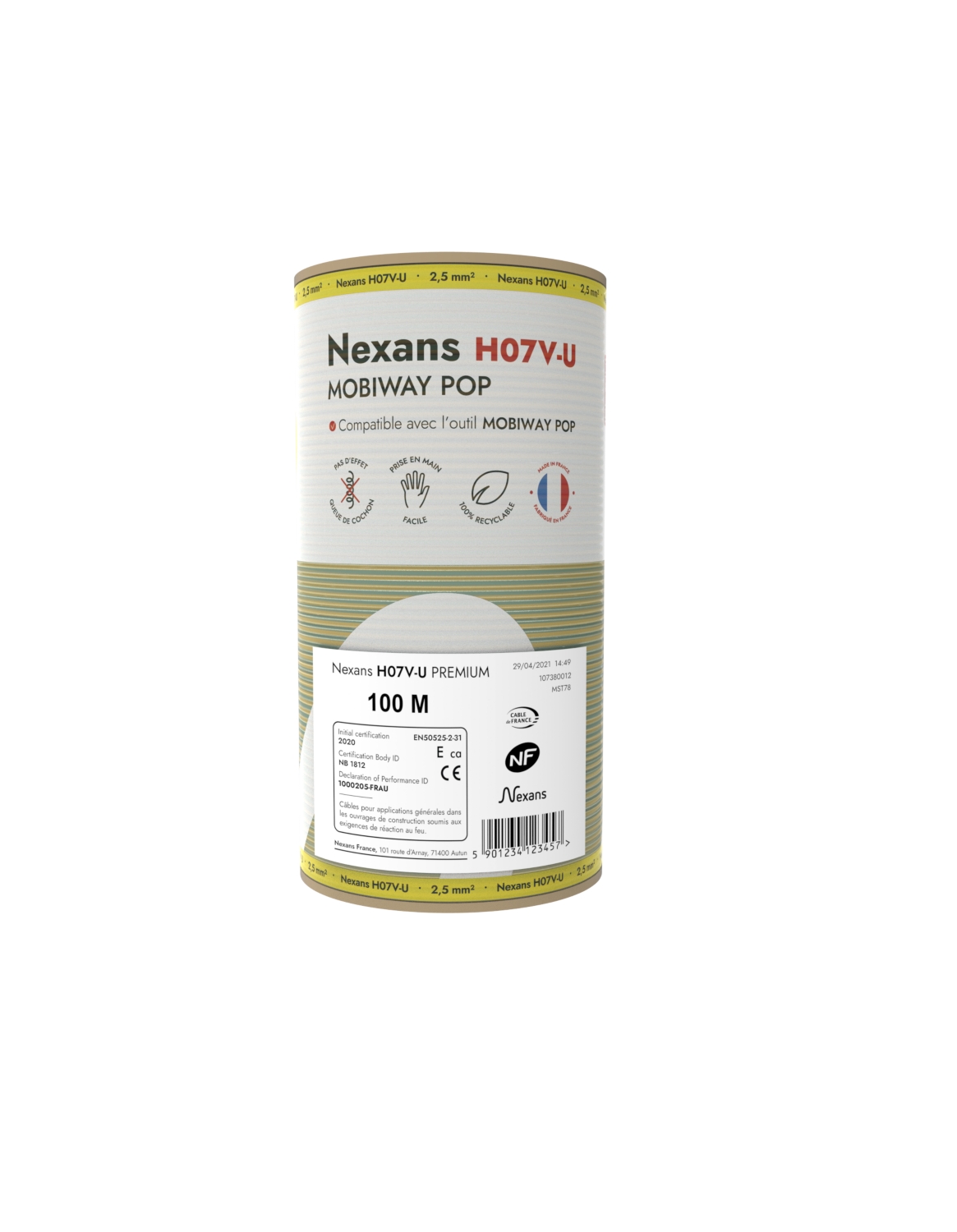 Fil H07V-U Mobiway Pop 2,5 mm² vert/jaune couronne 100 m Nexans