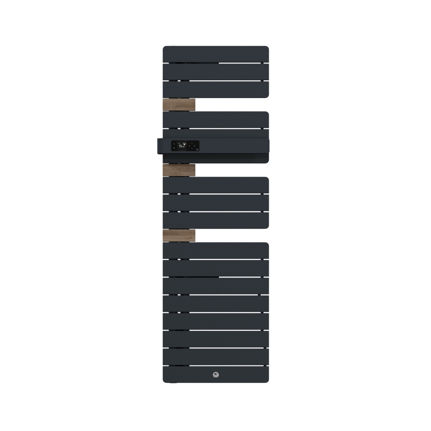 Sèche-serviettes électrique Allure 4 étroit connecté mât à gauche 500 W noir carbone / chêne clair Thermor