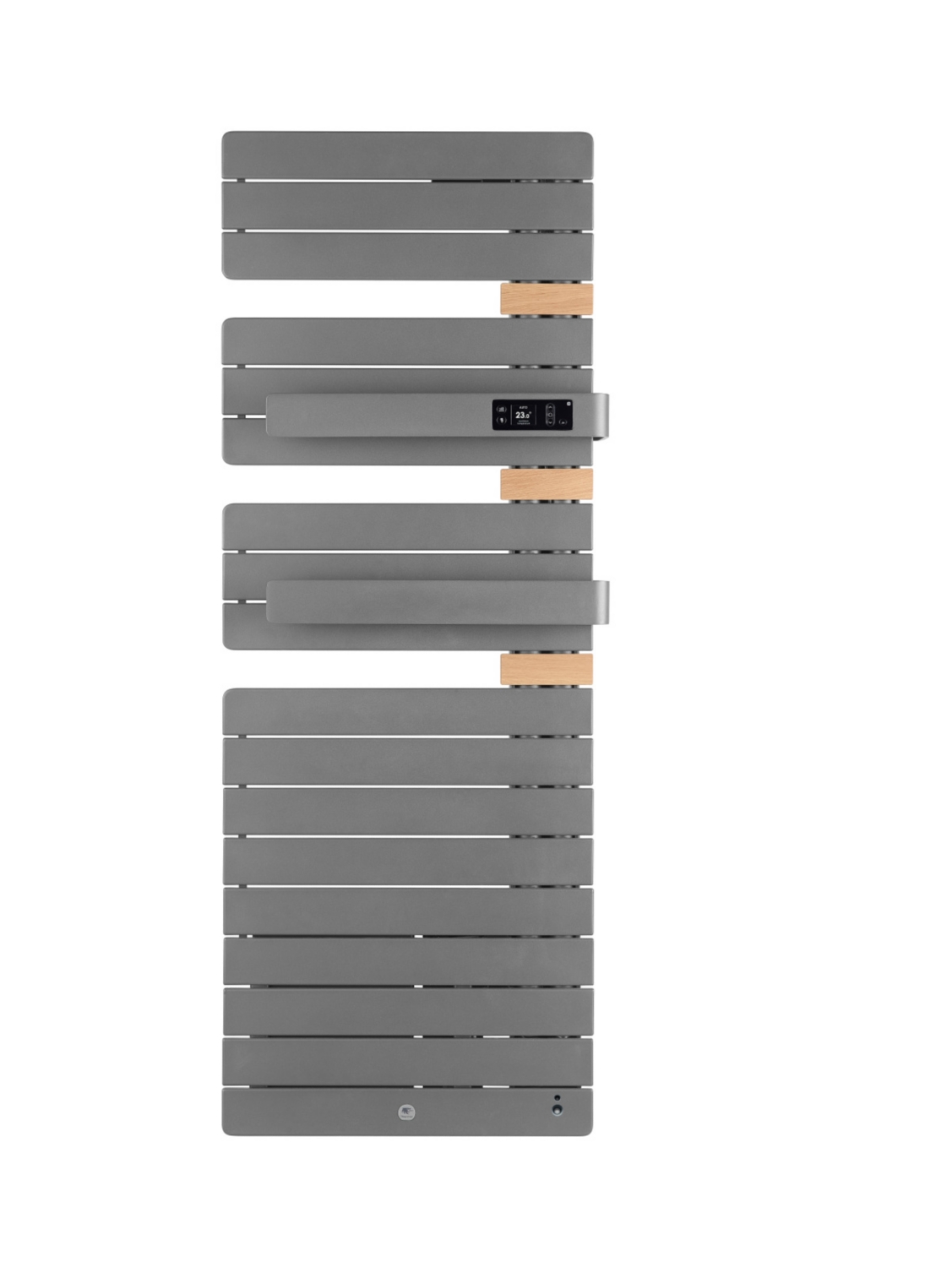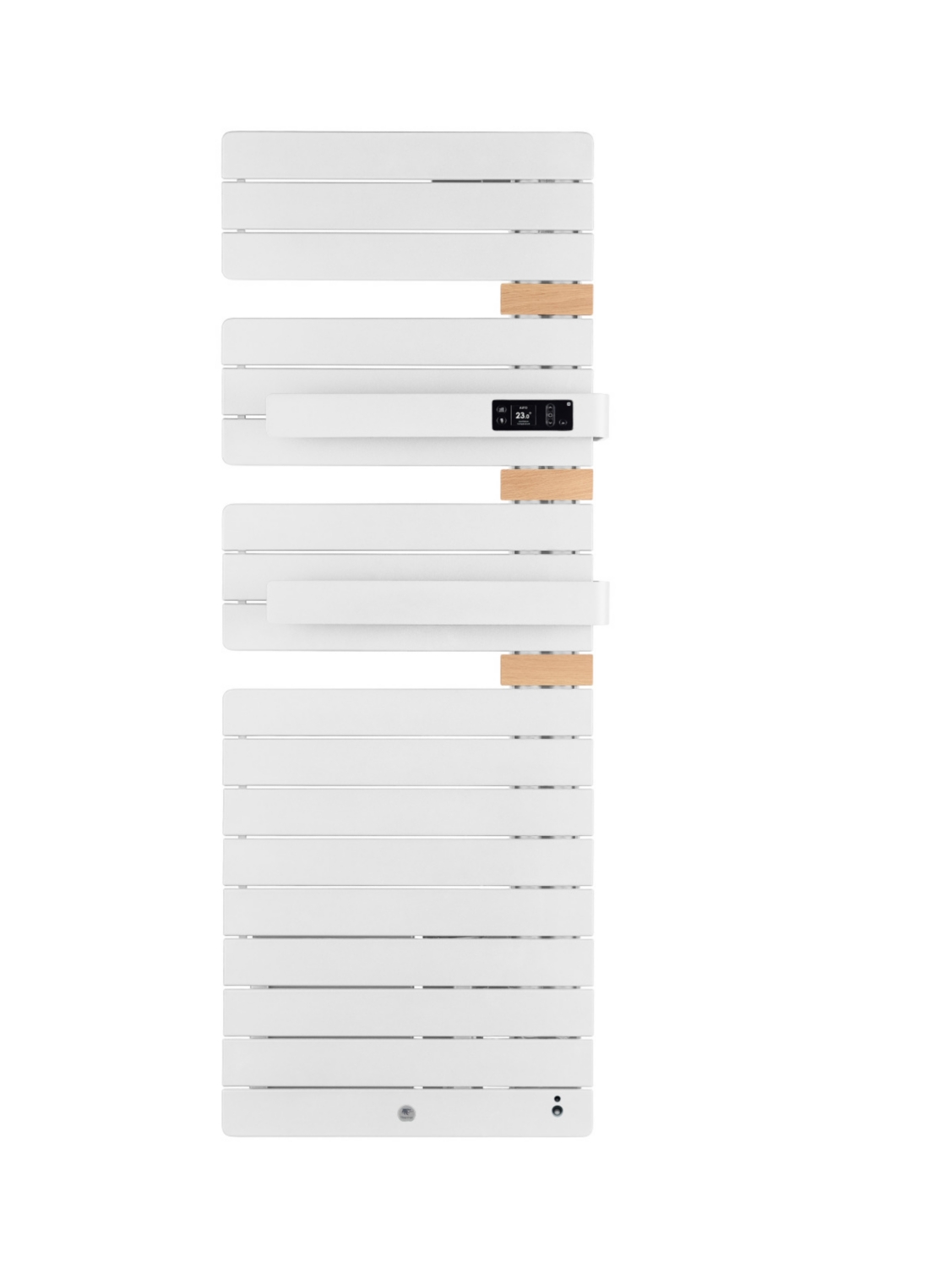 Le sèche-serviettes électrique connecté comporte également une commande digitale à hauteur avec deux touches en accès direct.