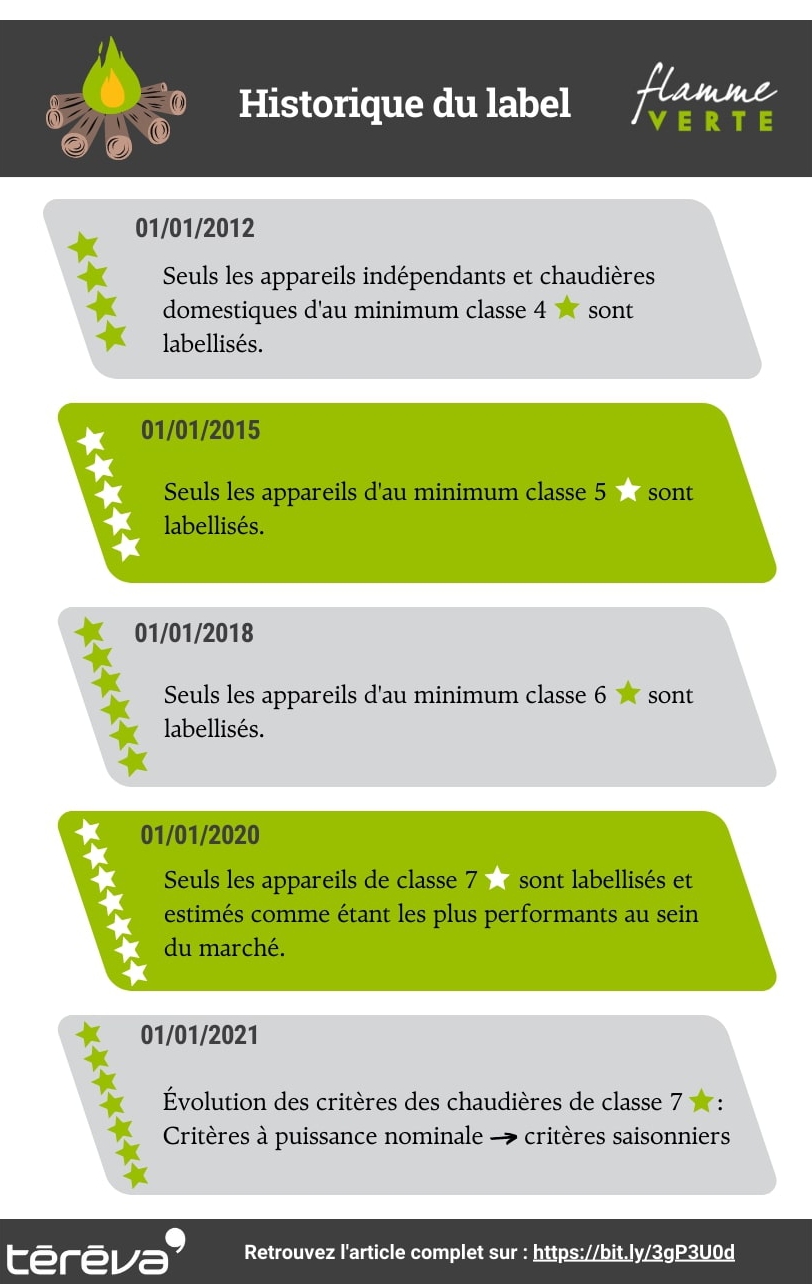 Le label Flamme Verte a été créé en 2000 par les fabricants d’appareils domestiques avec l’appui de l’ADEME (Agence de l'Environnement et de la Maîtrise de l'Energie).