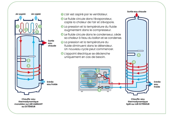 Il capte les calories présentes dans l’air pour chauffer l’eau, ce qui permet de valoriser une énergie renouvelable et gratuite.